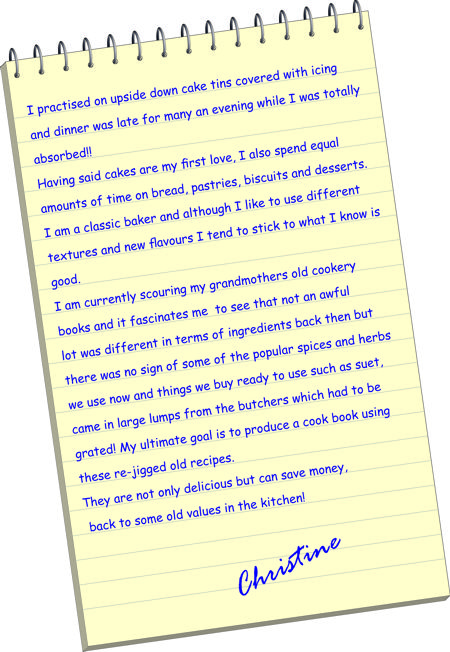 I do hope you enjoy reading my web site with its weekly news, recipes and baking tips and if there is anything you would like to comment on or send me, please feel free to email!