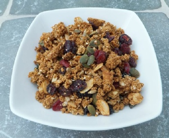 N.B. Please note that all ovens vary. If your granola seems to be turning too brown cook for slightly less time and add the fruit accordingly.