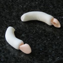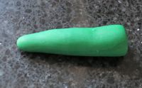 Make small hands by rolling 2 small balls in the flesh paste and slightly flattening. Leave a 'tail' that will go in the arms.