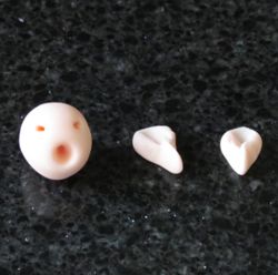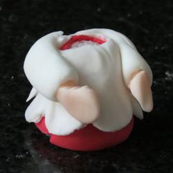 Make the head by rolling a small ball of flesh colour paste and shape the singing mouth and the eye sockets
