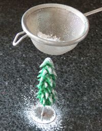 Simulate snow by sieving over icing sugar.